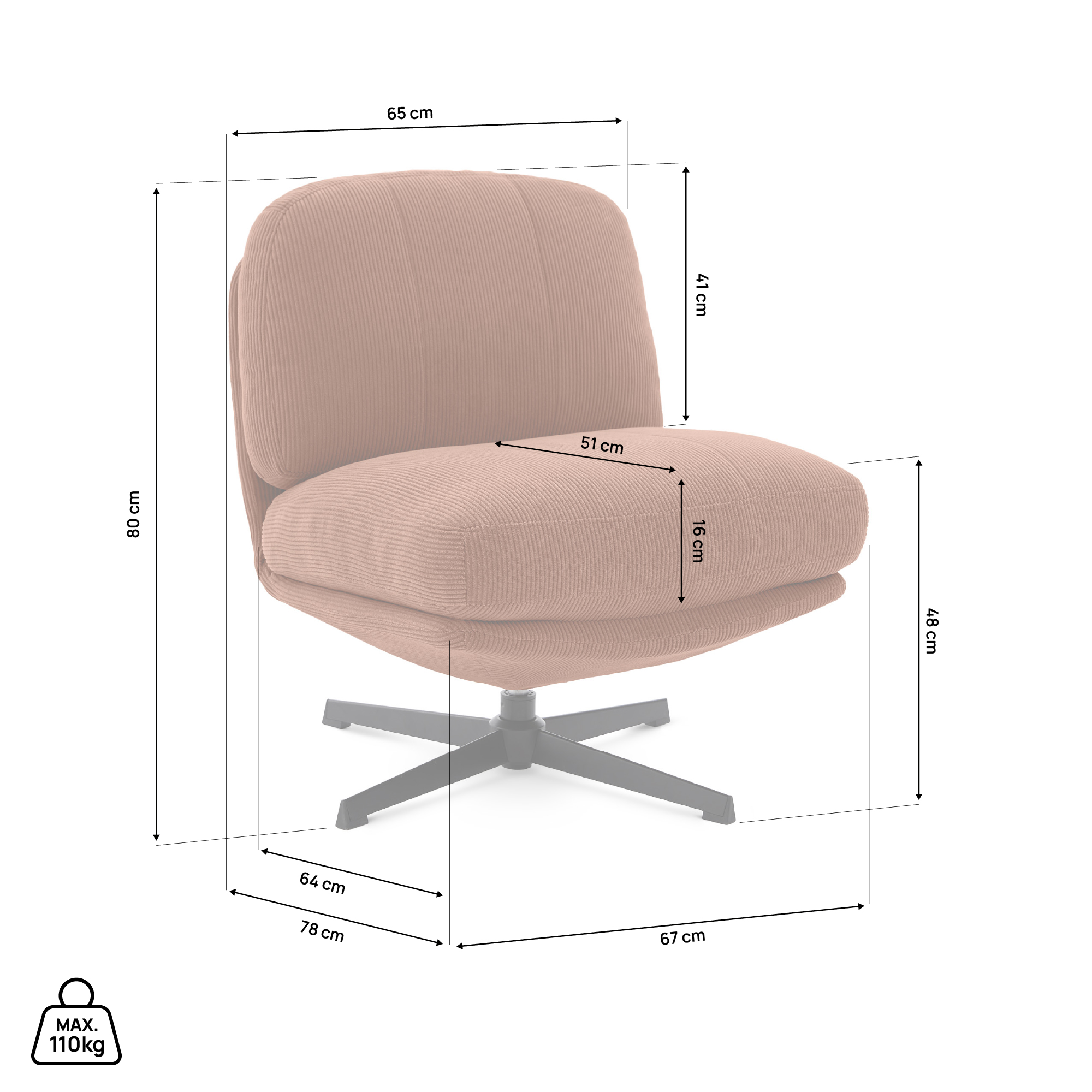 Der Drehsessel LENA verleiht Ihrem Interieur mit seinem Cordbezug, einem absoluten Must-have im Interior Design, einen modernen und trendigen Touch. Dieser innovative Stoff vereint Eleganz und Komfort und bietet ein einzigartiges haptisches Erlebnis. Cord ist aufgrund seiner Kratzempfindlichkeit nicht für Haushalte mit Haustieren geeignet. Dank seines Cordbezugs verleiht unser Drehsessel LENA Ihrer Einrichtung einen Hauch von Eleganz und Modernität.
